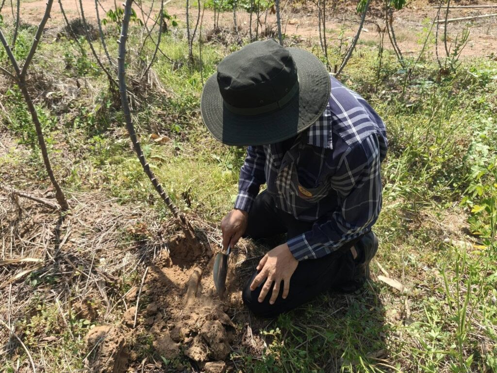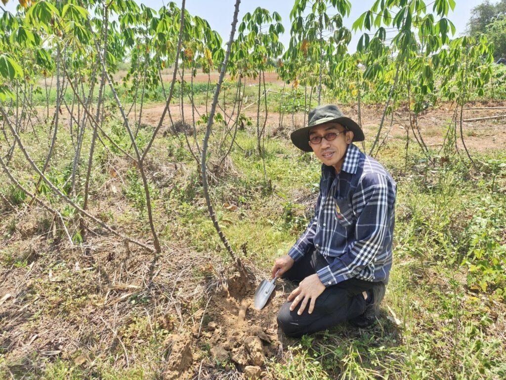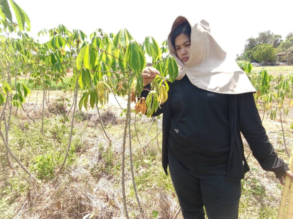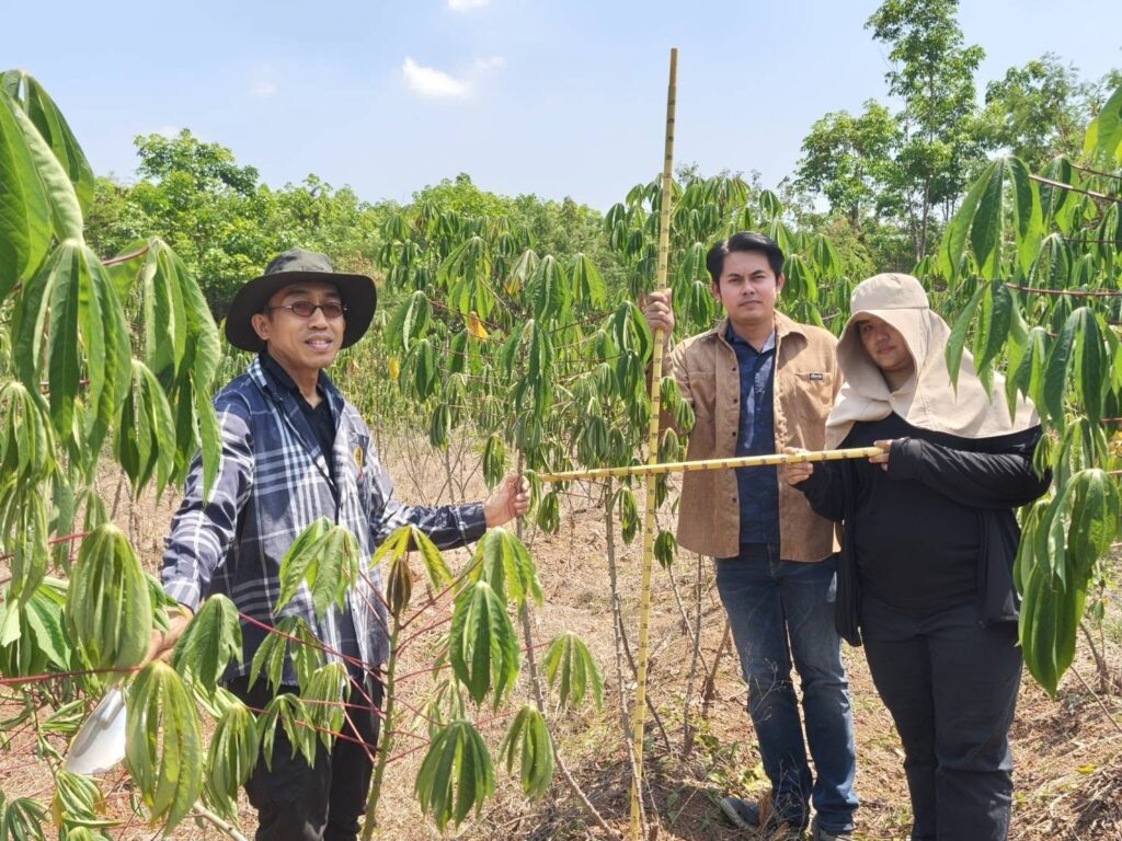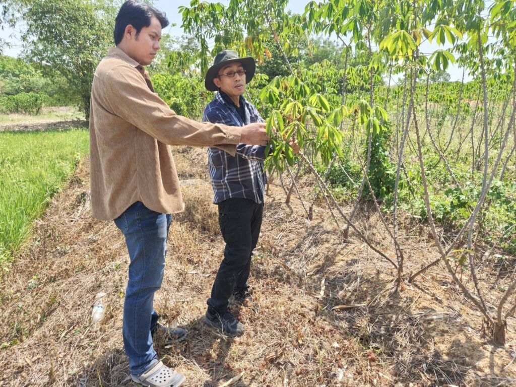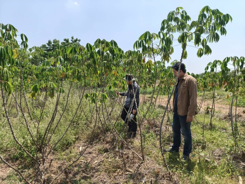 นางสมพิศ ขวัญสูงเนิน เกษตรจังหวัดอุทัยธานีมอบหมายให้นายแรงราม พลจันทร์ หัวหน้ากลุ่มอารักขาพืช และเจ้าหน้าที่กลุ่มอารักขาพืช สำนักงานเกษตรจังหวัดอุทัยธานี พร้อมด้วยเจ้าหน้าที่สำนักงานเกษตรอำเภอลานสัก ลงพื้นที่สำรวจโรคใบด่างมันสำปะหลังและติดตามโครงการส่งเสริมการขยายพันธุ์และการปลูกมันสำปะหลังพันธุ์ต้านทานโรคใบด่างมันสำปะหลังเพื่อลดความรุนแรงของโรคใบด่างมันสำปะหลังในประเทศไทยจังหวัดอุทัยธานี ณ ตำบลลานสัก อำเภอลานสัก จังหวัดอุทัยธานี จากการลงพื้นที่สำรวจโรคใบด่างมันสำปะหลังและติดตามฯ เพื่อเก็บข้อมูลการแสดงอาการของโรคใบด่างมันสำปะหลังและติดตามผลการปลูกมันสำปะหลังพันธุ์ต้านทานโรคใบด่างมันสำปะหลังซึ่งประกอบด้วย พันธุ์อิทธิ 1 พันธุ์อิทธิ 2 และพันธุ์อิทธิ 3 ปรากฏว่าพบการแสดงอาการของโรคใบด่างมันสำปะหลังในพันธุ์อิทธิ 1 และอิทธิ 2 พบการระบาดของโรคพุ่มแจ้ และแมลงศัตรูพืช เช่น เพลี้ยแป้ง เพลี้ยหอยเกล็ดขาว